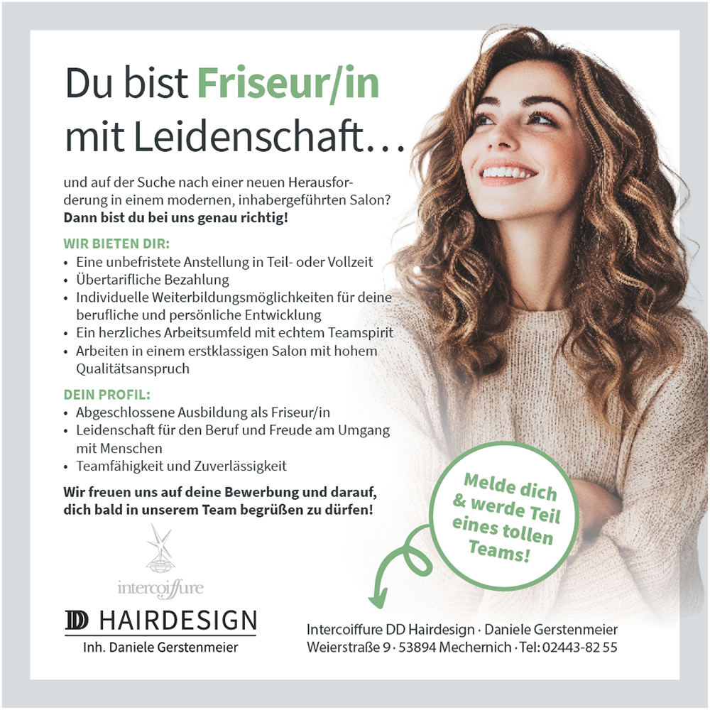 Wunderbar, dass Sie uns besuchen - DD Hairdesign, der Friseur in Mechernich. Wir sind Friseure und das ist gut so. Ihre Schönheit, gesundes Haar und ein gepflegtes Aussehen sind unsere Aufgaben.